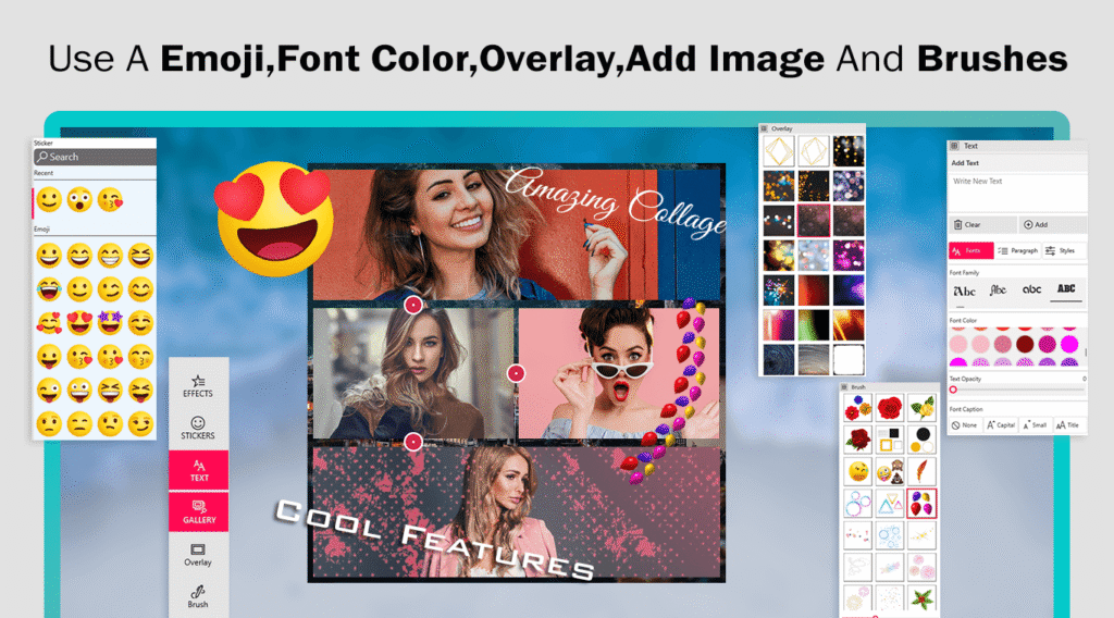 - The ‘Sticker‘ button allows you to apply stickers to your collage image creation.