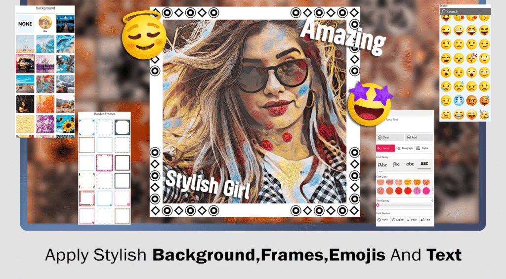 - The ‘Sticker‘ button allows you to incorporate trendy stickers and enhance the meaning of your image.